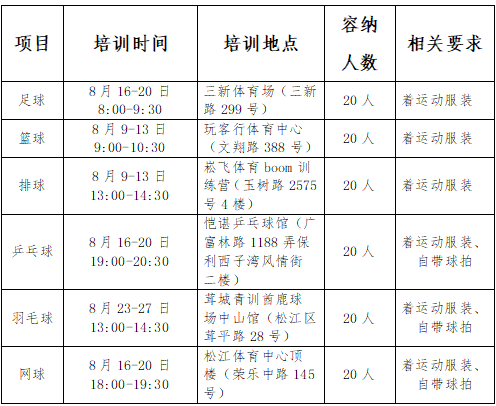 报名表见附件:松江区体育项目暑假公益培训报名表(请点击阅读原文下载附件,提取码:aypa)