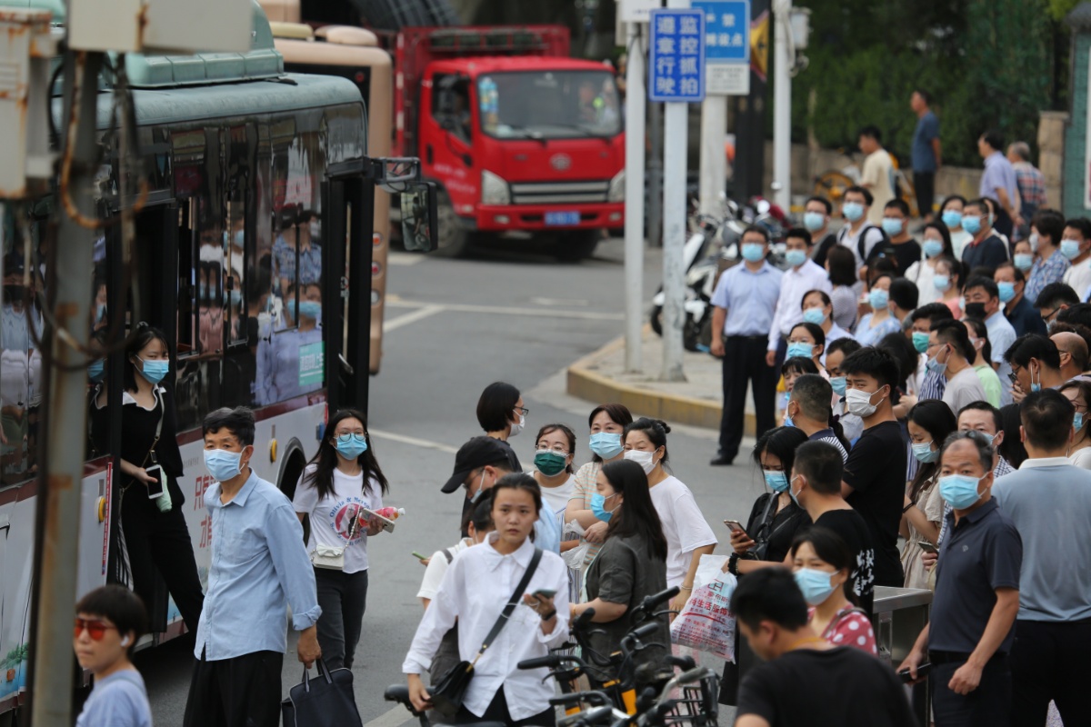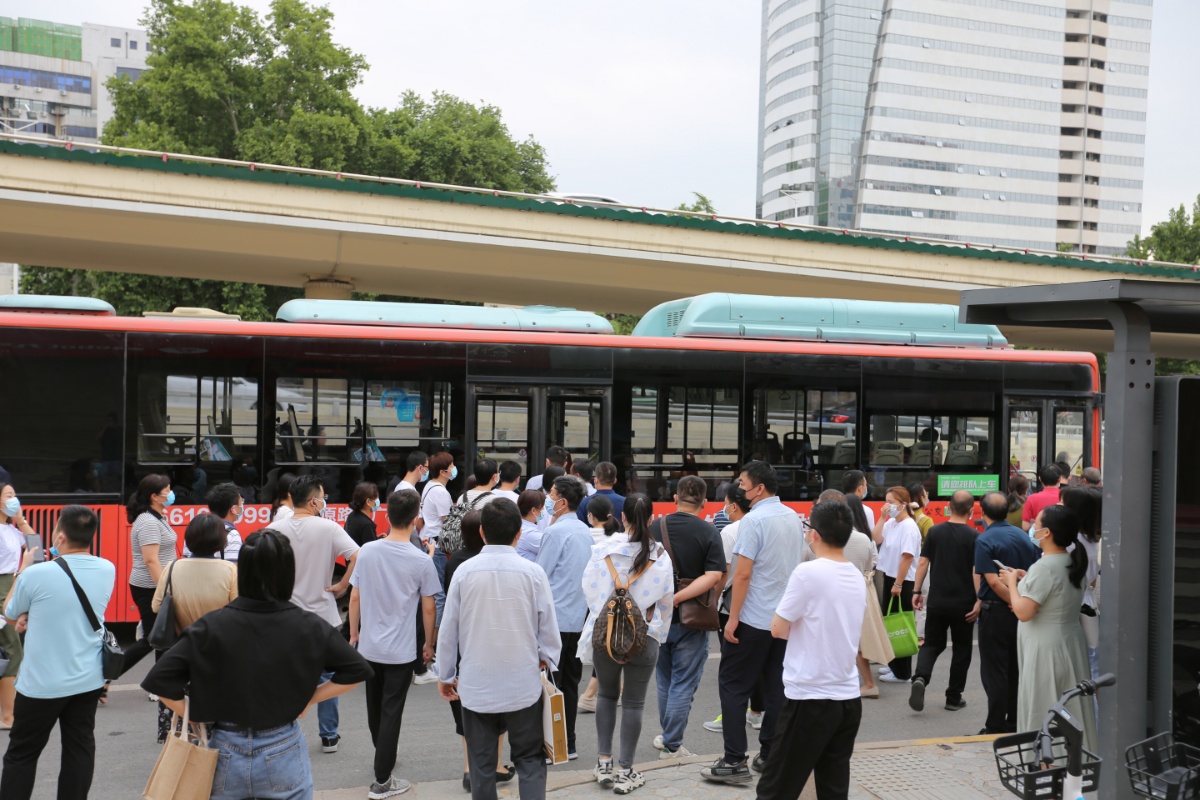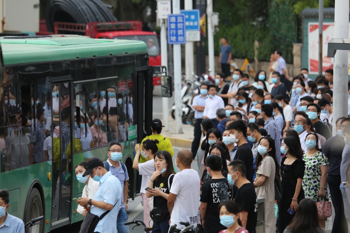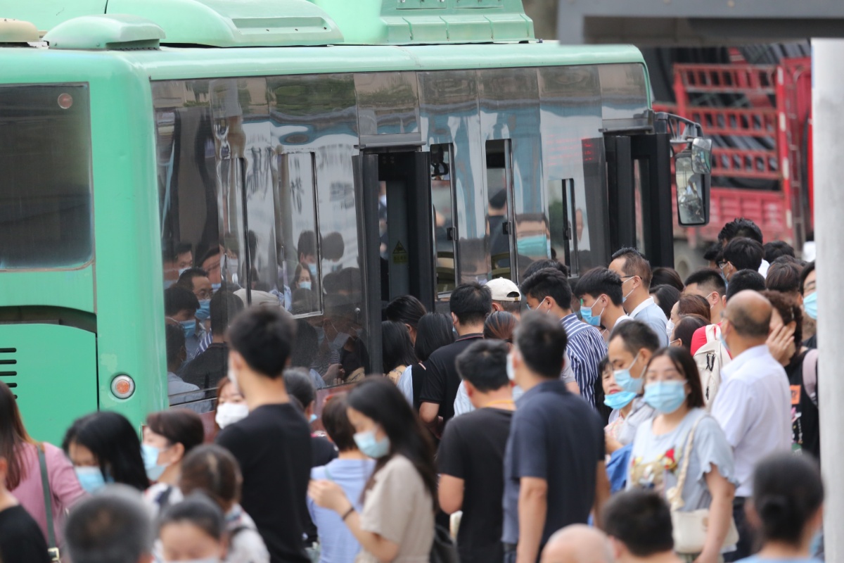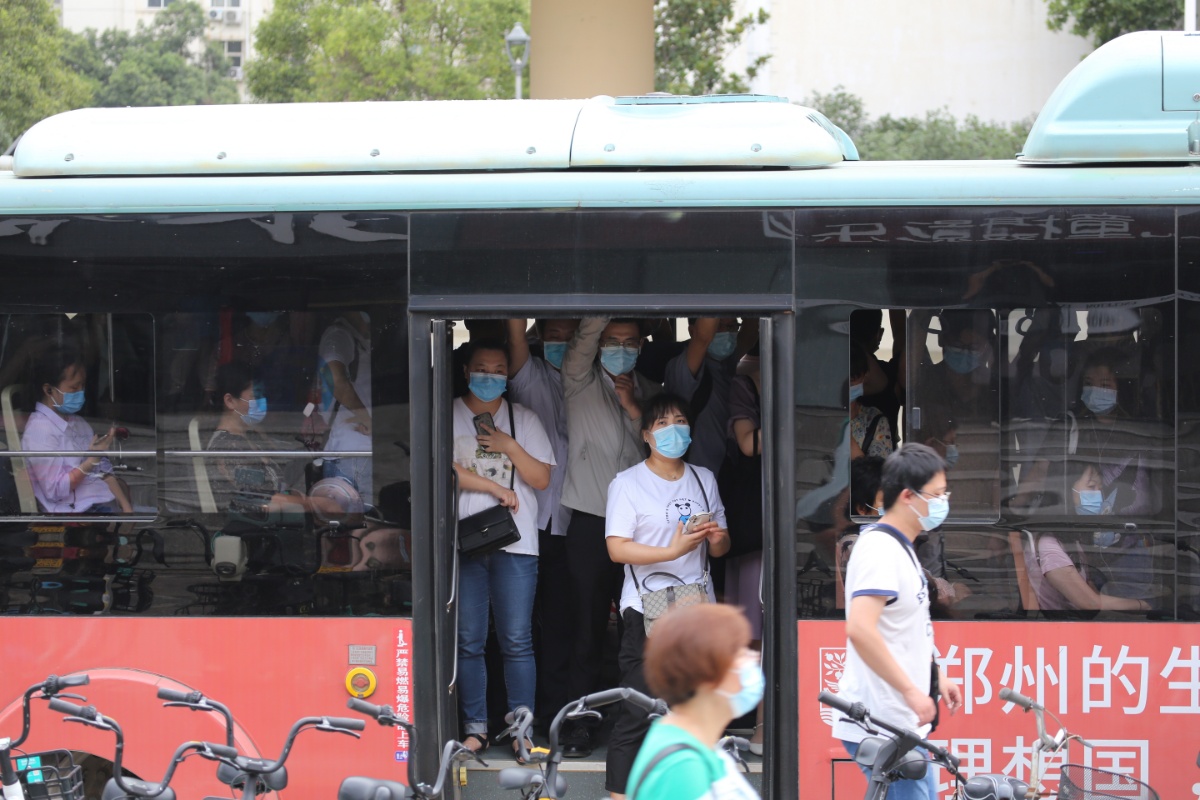 郑州地铁尚未恢复运营 早高峰上班族蜂拥乘公交