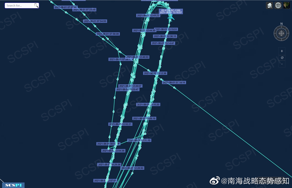 图片说明:美空军RC-135S导弹监视机飞行轨迹图 来源:@南海战略态势感知
