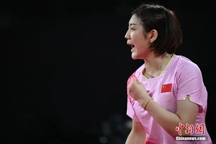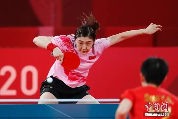 7月29日,在东京奥运会乒乓球女子单打决赛中,中国选手陈梦以4比2战胜队友孙颖莎,夺得冠军。图为陈梦在决赛中。 中新社记者 杜洋 摄
