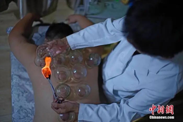 资料图:天津,市民在一家中医推拿馆感受拔火罐。中新社记者 佟郁 摄