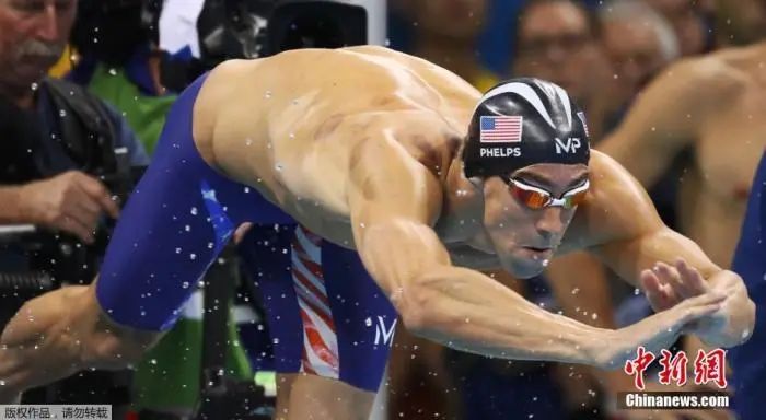 资料图:里约奥运会男子200米混合泳决赛中,美国传奇游泳巨星菲尔普斯以巨大的优势夺得冠军,摘得个人奥运会历史第22枚金牌。中新网记者 富田 摄