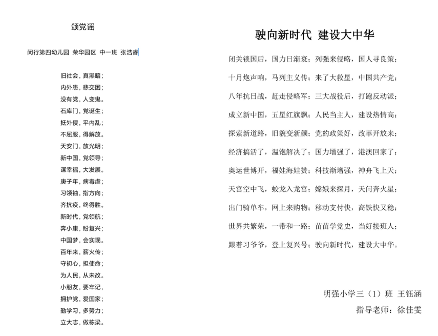童声童语,歌以咏志。本次活动中还有许许多多的小朋友像念一一样,用纯真的歌声唱出对党的美好祝福、对国家的真挚赞颂。《祖国祖国我们爱你》《赞歌》《红太阳照山河》《国旗红又红》……一件件童谣投稿作品生动体现了家国情怀与艺术表达的有机结合,也充分展现了长三角青少年“听党话、感党恩、跟党走”的良好精神风貌。
