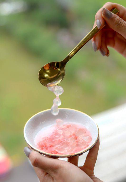 西瓜爽脆,巨甜,配上茉莉花茶底整体很清香,一不小心就跌进了夏天的怀抱。