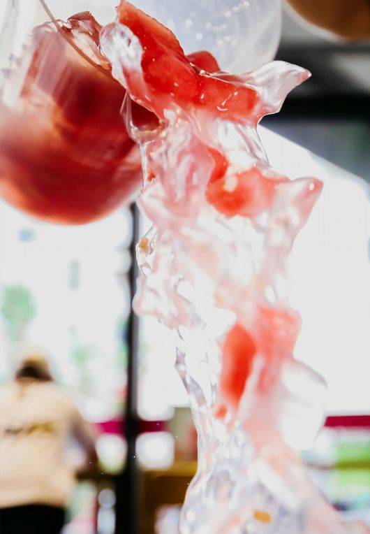 选用无籽西瓜,纯手工捣碎,加入晶莹剔透的啵啵与绿茶打底,喝一口十分清爽、解腻。