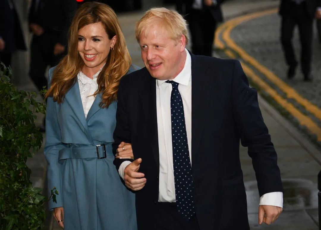 ▲ 约翰逊的现任妻子凯莉・西蒙兹(Carrie Symonds)比他小23岁,是一名资深公关人员。2019年约翰逊当选英国首相后,西蒙兹以“第一女友”身份陪同约翰逊入住唐宁街10号。2021年5月29日,两人在伦敦举行小型婚礼。