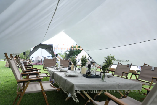 “落日营地”的举办地点,是LCM置汇旭辉广场彩虹桥下的草坪。小布在现场看到,数顶帐篷分散支起,有的摆上木制桌椅,桌面点缀着小花小草,一派小清新范儿;有的添置了全套画具,欢迎市民用画笔留下自己的夏日记忆;还有的打造出一个惬意空间,供市民看看书、发发呆,消暑休闲。