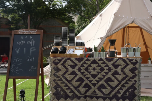 “营地”还开设了一个“咖啡因补给站”,各种特色咖啡不间断散发着治愈的味道,会员有机会免费领取一杯冰美式咖啡。