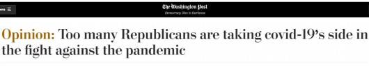 △《华盛顿邮报》专栏作家尤金·罗宾逊发表《太多共和党人在抗疫中站在了病毒一边》一文