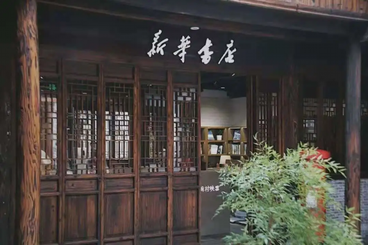 书店由古宅修缮而来,白墙黛瓦,庭院深深。书香茶香,时光悠长。