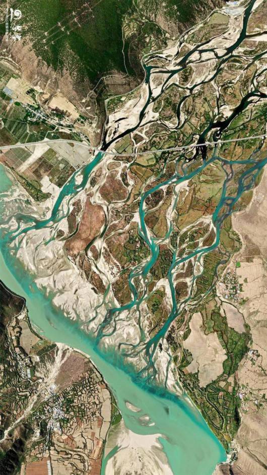 卫星视角下的尼洋河辫状水系。卫星影像来源:天地图