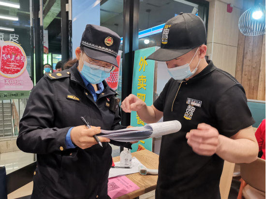 之后她忍着疼痛坚持完成了当日的巡查工作,并对4家未严格落实防疫措施的商户当场发放《执法事项提示单》,提示各商户进一步提高思想认识和重视程度,充分发挥主体责任,严格规范落实各项防疫措施。