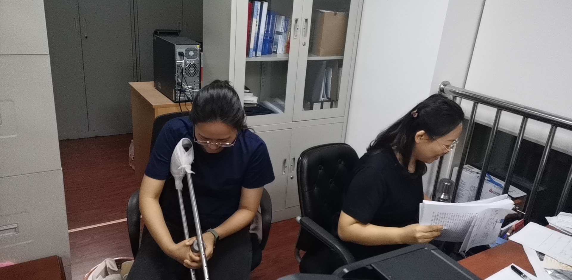脚伤了,家住房山的范俊卿每天往返通勤变得很不方便!拄着拐杖的范俊卿干脆在大队备勤室住下了,最长一次连续住了6天,一直坚持到值班完毕才回家。