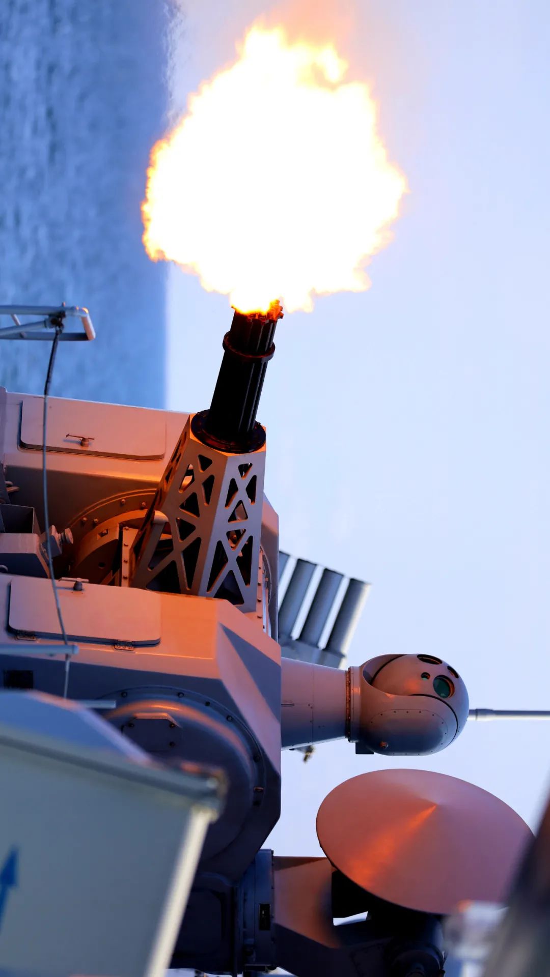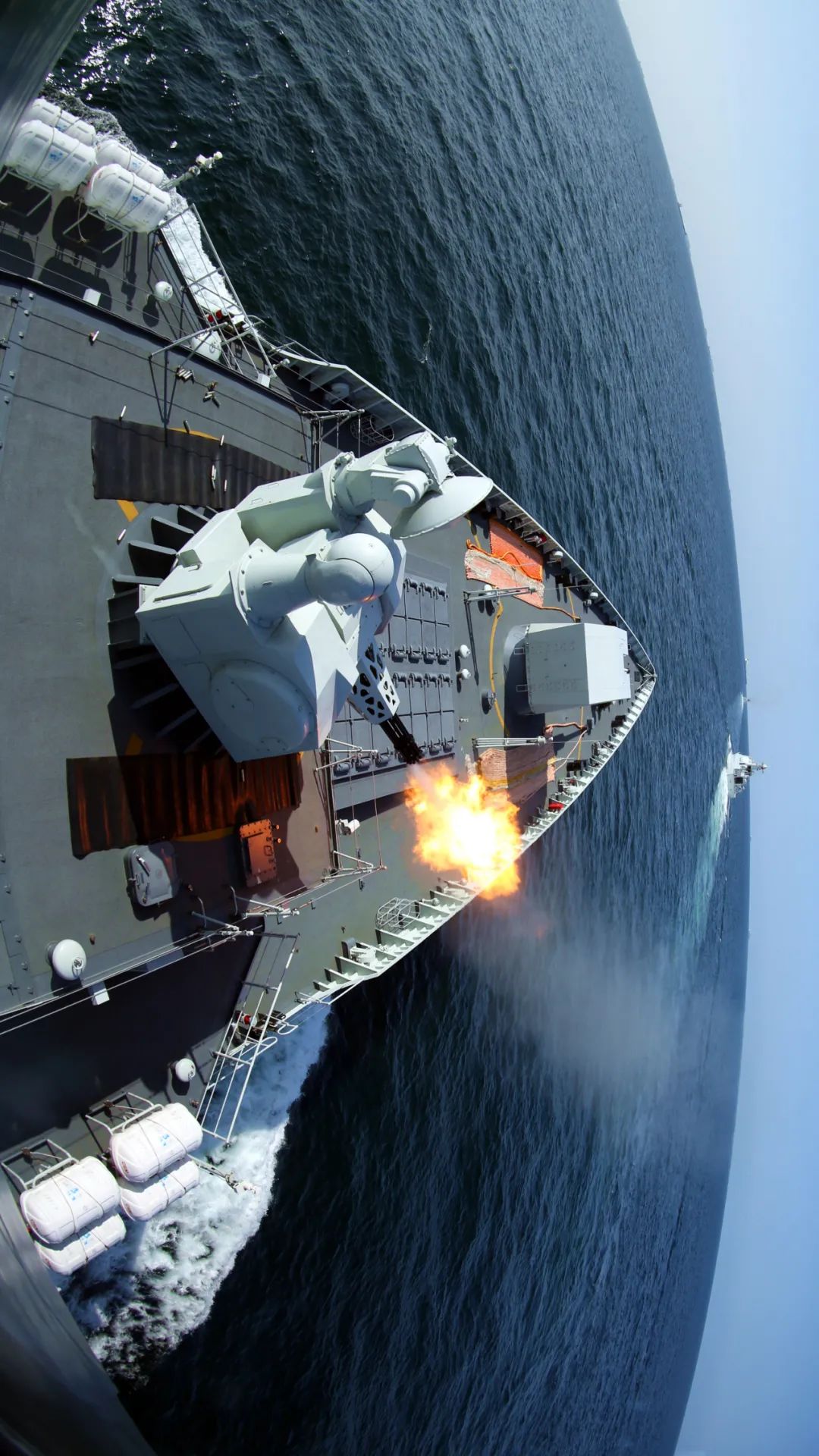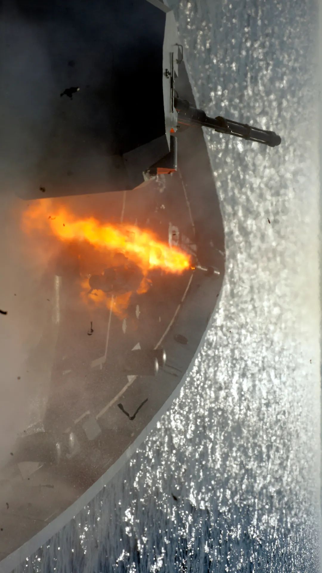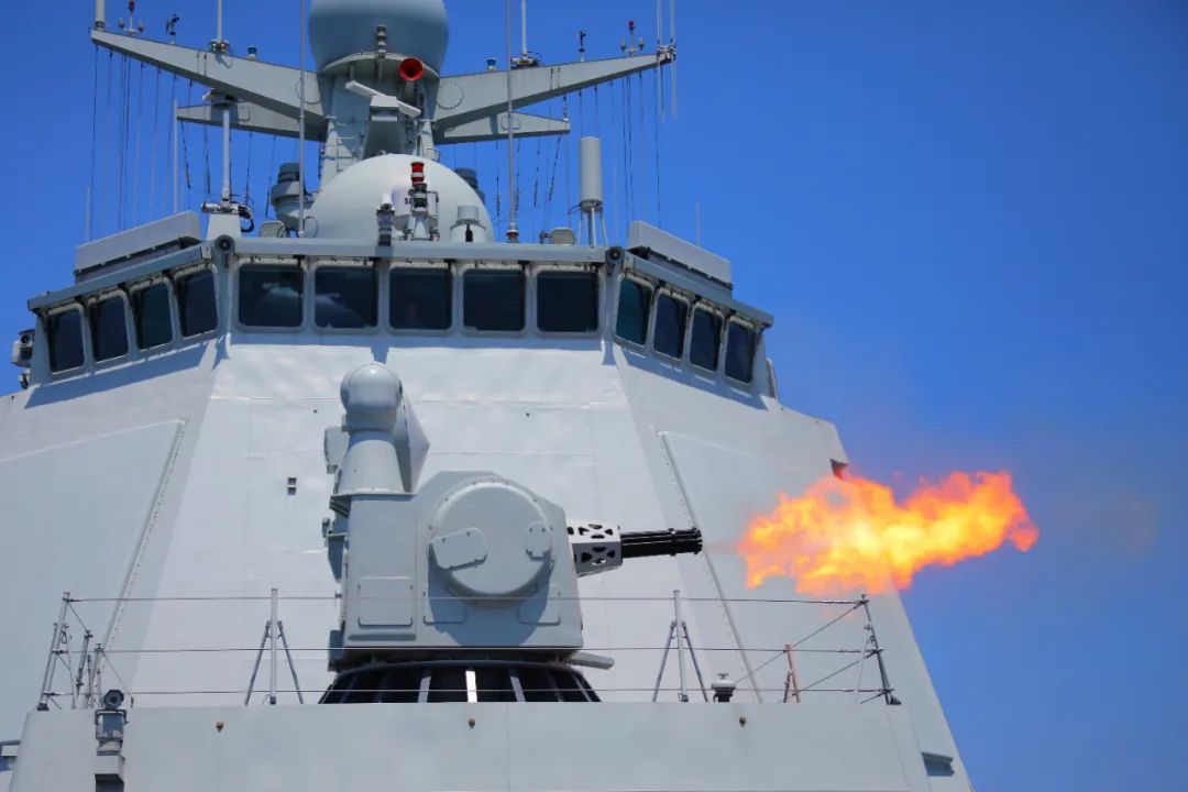 “请示射击!”“开火!”说时迟那时快,海天之间硝烟弥漫,炮声隆隆,多发炮弹脱膛而出……