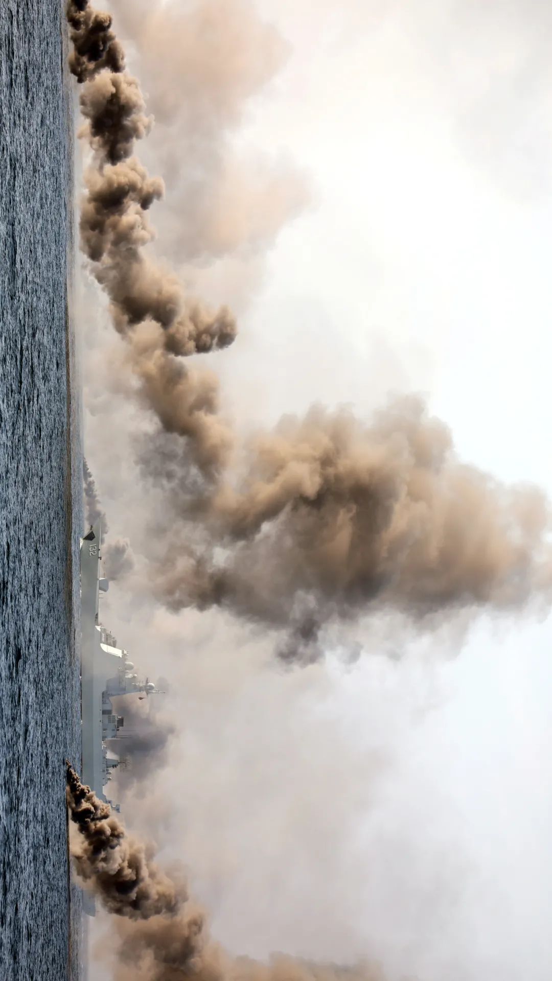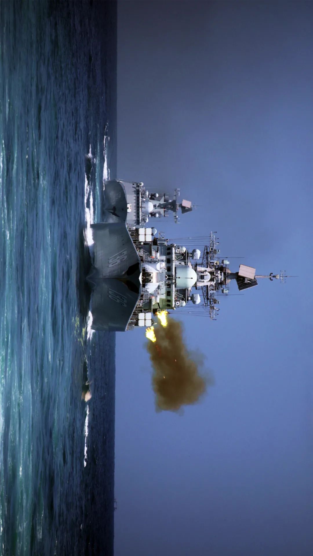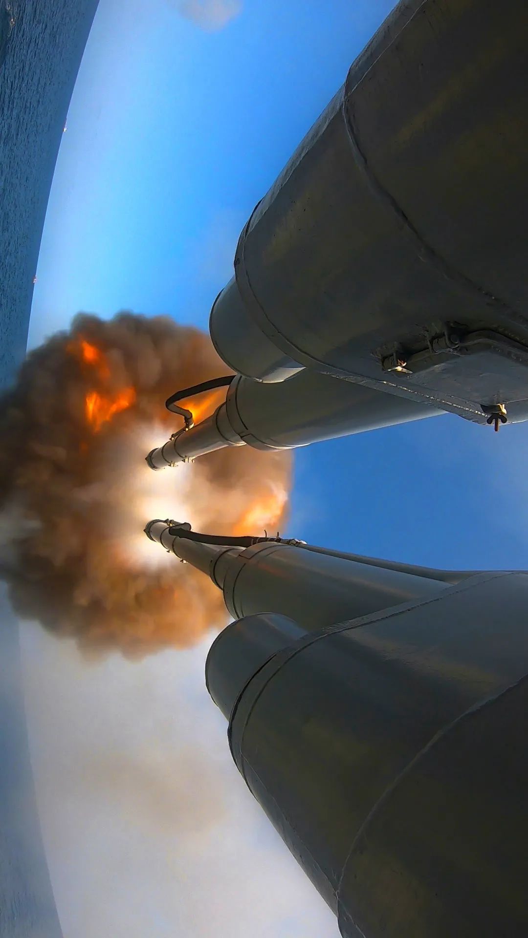 “请示射击!”“开火!”说时迟那时快,海天之间硝烟弥漫,炮声隆隆,多发炮弹脱膛而出……