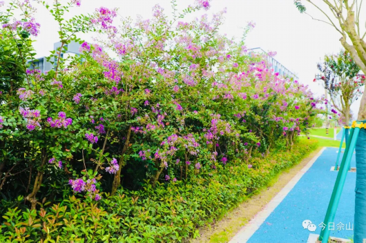 马路边、“小花园”里绚丽绽放的鲜花随风摇曳,尽展风姿。