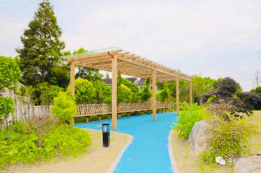 同时在两侧绿化带内新建彩色沥青步道增设草坪灯、花境小品休闲坐凳、紫藤廊架等,打造成为可供市民休闲散步的“小花园”。