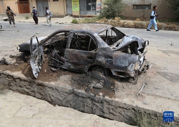 (图片说明:这是8月30日在阿富汗喀布尔拍摄的一辆毁坏的汽车,这辆汽车内部装有火箭弹发射装置,当日发射火箭弹后被毁。据目击者称,多枚火箭弹30日射向阿富汗首都喀布尔国际机场,目前暂无人员伤亡报告。新华社发,卡比尔 摄)