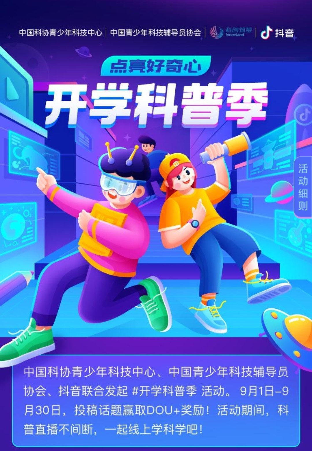 近日,抖音发起“开学科普季”直播活动,打造给青少年的知识讲堂。活动邀请邬贺铨、翟明国等院士专家,李云鹤、周皓等“大国工匠”代表,中科院国家天文台研究员郑永春等学者,围绕科学、艺术、文学等领域进行直播科普。据了解,该活动为期一个月,其间各个领域的专家、学者、创作者将带来40场面向青少年的科普直播分享。