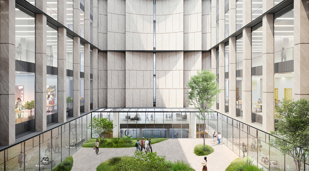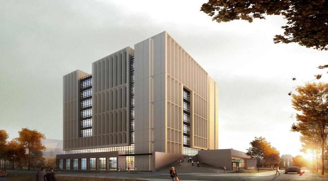 建筑面积约20300平方米,紧邻校园南大门,方正高耸,现代又不失庄重,采用虚实对比、体块切割的设计手法。建成后将成为高端产业、产业共建共管实验室。