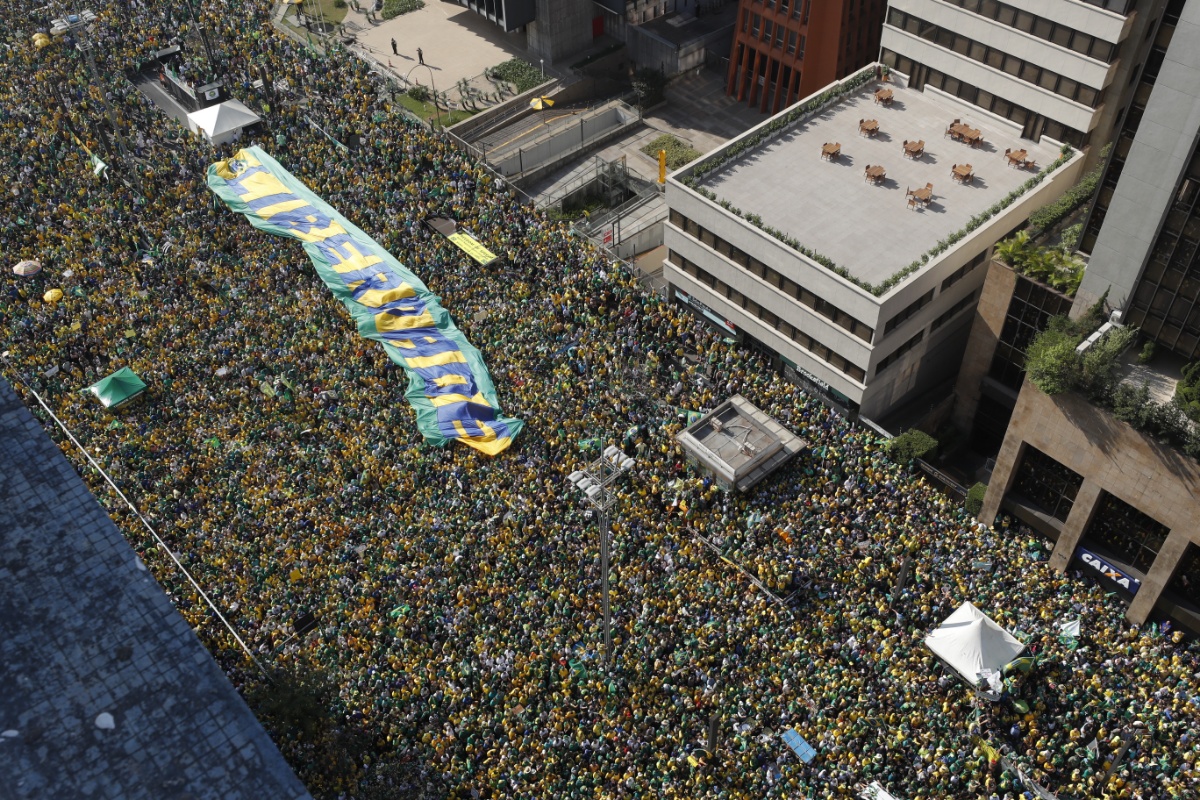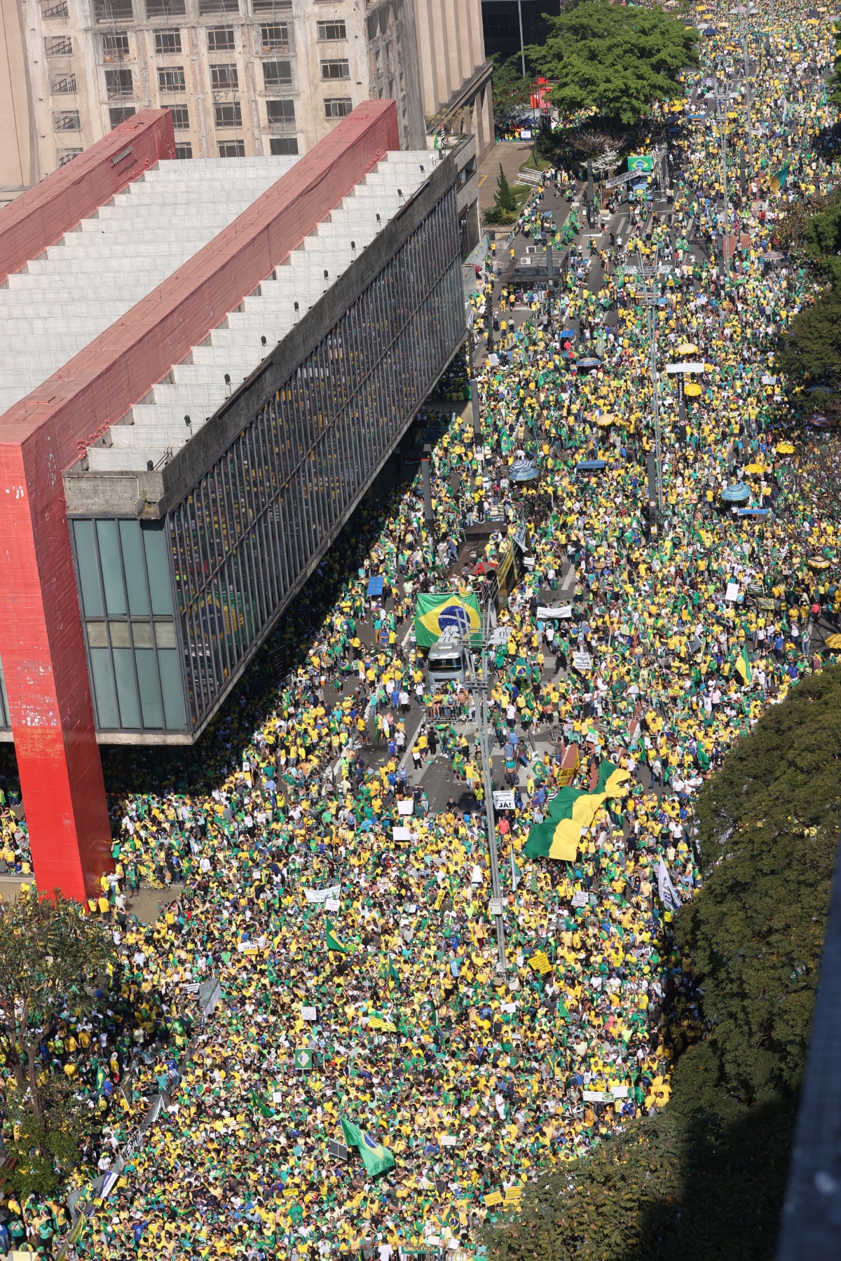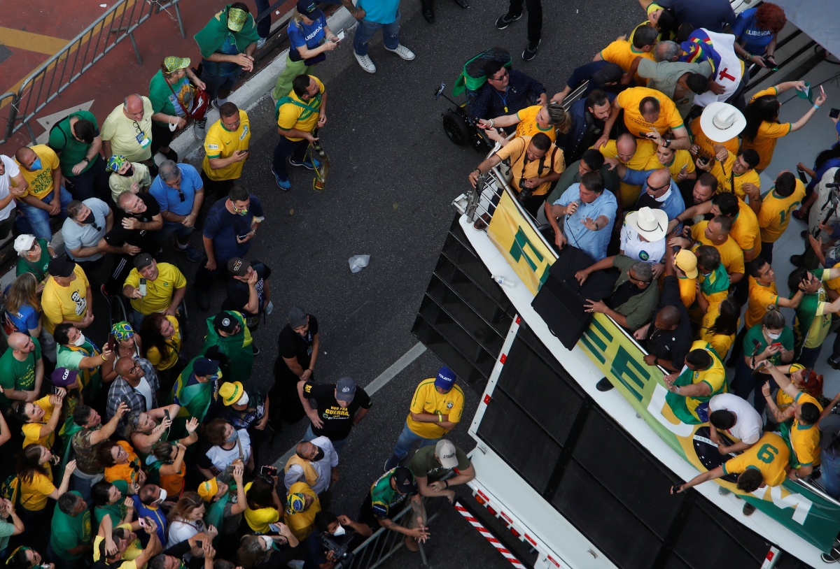当地时间2021年9月7日,巴西圣保罗,巴西总统博索纳罗的支持者走上街头参加集会,声援博索纳罗。