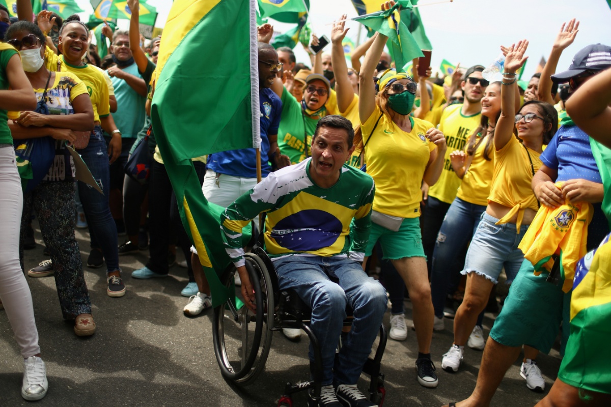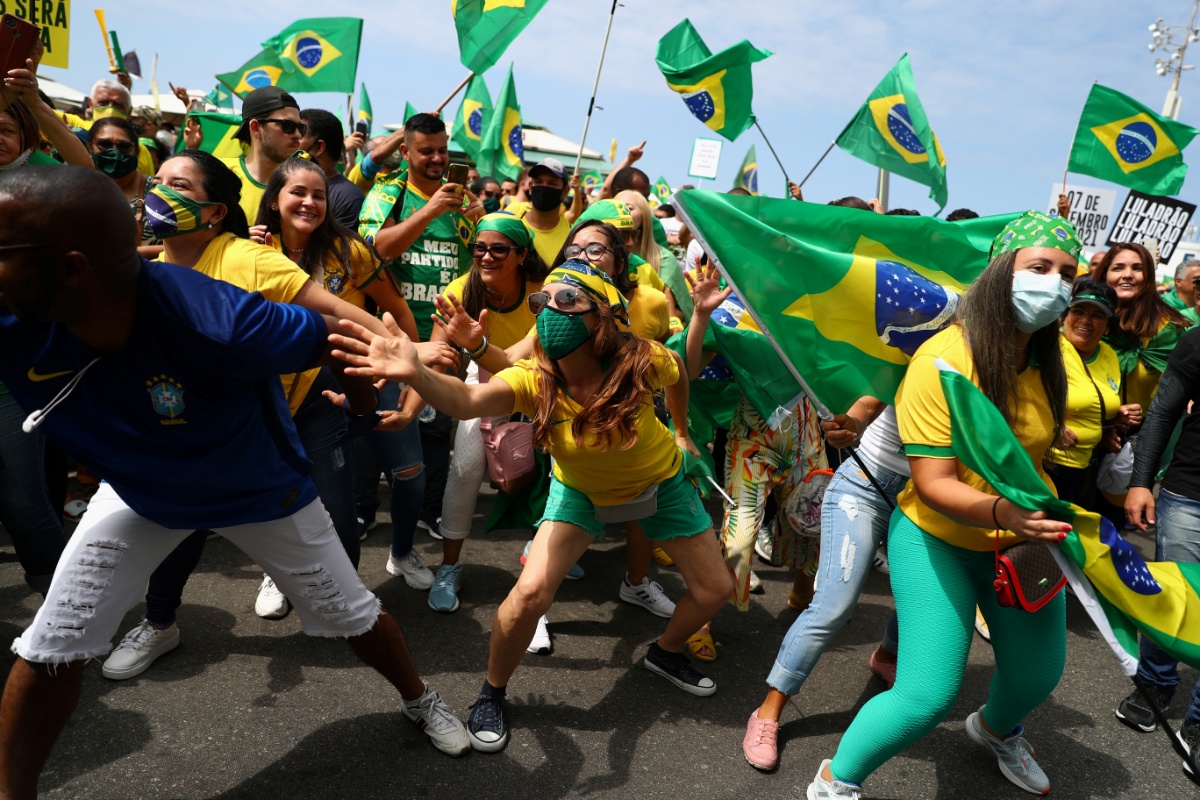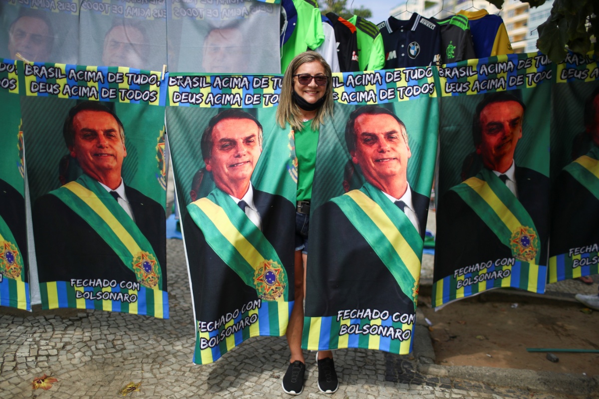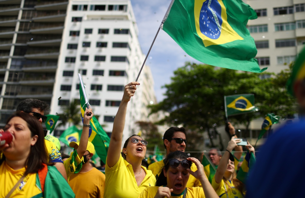 当地时间2021年9月7日,巴西里约,巴西总统博索纳罗的支持者走上街头参加集会,声援博索纳罗。