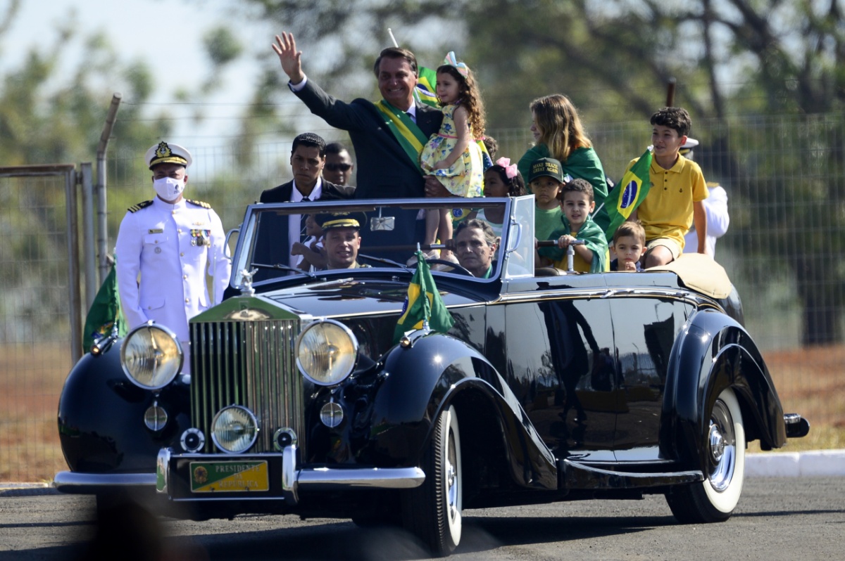 当地时间2021年9月7日,巴西首都巴西利亚,巴西总统博索纳罗的支持者走上街头参加集会,声援博索纳罗。