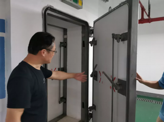 崇明民防工程管理所所长施汉兵介绍,这里的民防工程使用面积有1万多平方米,共有3个出入口,工程内供水供电通风设施一应俱全。“战时状态下,人员、设备和物资等通过这样的出入口进入掩蔽空间。”施汉兵指着地下室入口一侧的两道密闭门说:“门口还会安装滤毒、消洗等设施,以及监测、警报等设备。密闭门关闭后,可有效隔绝水火、核生化物的侵入。”