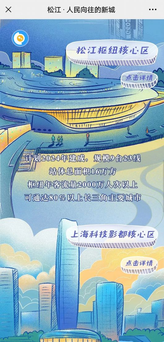 松江枢纽核心区。枢纽站体工程计划2024年建成,规模9台23线,站体面积16万方,枢纽年客流量2000万人次以上,可通达80%以上长三角主要城市。松江枢纽核心功能区规划建设面积2.47平方公里,围绕G60科创产业、科技影都、立体枢纽、低碳城区四大特色,打造面向长三角和面向全国的上海西南门户枢纽,打造站城一体,具备上海城市副中心能级的新城南部中心。