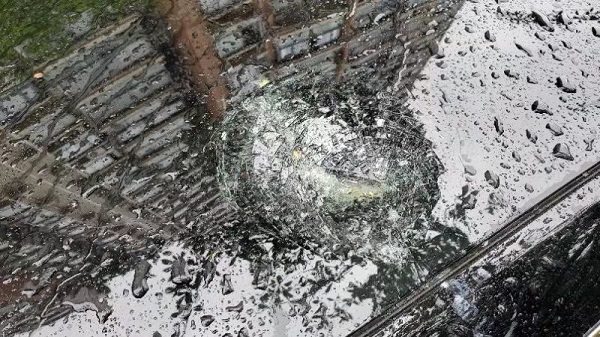 图说:汽车后挡风玻璃被震碎 采访对象供图/下同