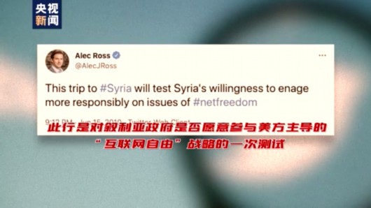 2010年6月,两个年轻的美国人出现在了大马士革街头。亚历克·罗斯、贾里德·科恩,跟随美国国务院代表团到访的这二位此行有个特殊使命。他们对此次大马士革之行非常满意,科恩像游客一样发推特称:“不开玩笑地说,在大马士革北部的卡拉姆恩大学,我喝到了最棒的星冰乐。”表面轻松的背后,他们正在酝酿一场阴谋,线索就在亚历克·罗斯的推特上,他说:“此行是对叙利亚政府是否愿意参与美方主导的‘互联网自由’战略的一次测试。”