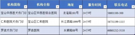 宝山区现有3家犬伤门诊,24小时全天候开设。
