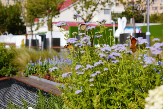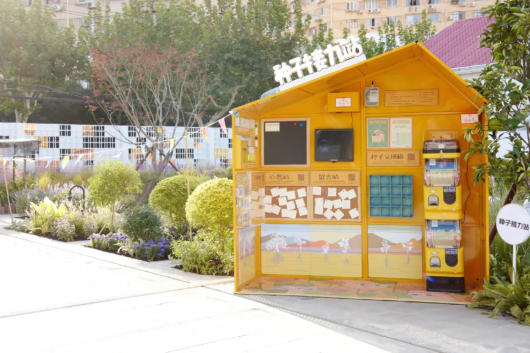 这是一个从原有硬质场地中生长出来的花园,有蜂蝶安居的蝴蝶花园,有鸟儿欢喜的生态水塘,更有为小朋友准备的种子接力站跟实验田,大家可以来这边闻花香,观蜂蝶,为花儿浇水,把希望的种子带回自己的家和社区,把心目中的花园和美好社区未来绘到墙上、记在心里。共建共享,一起为美好的社区生活圈尽一份力量。