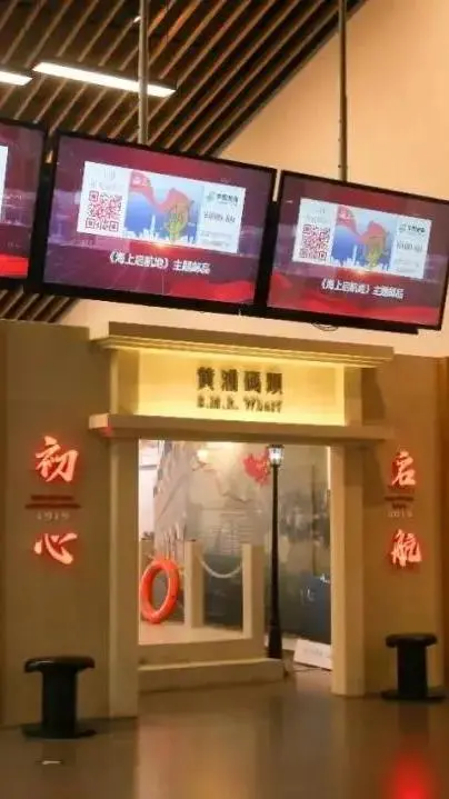 秦皇岛路码头候船大厅内,辟建了“初心·启航”展厅、国家级非物质文化遗产项目“上海港码头号子”展示区和“后工业·新百年”杨浦滨江全景导览文旅长卷展示区。