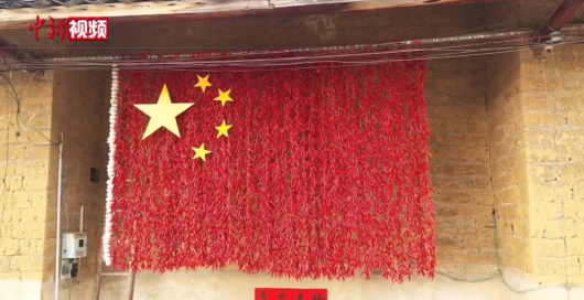 近日,广西柳州市柳江区拉堡镇黄岭村,村民用当地7.2万支辣椒拼出五星红旗图案,悬挂在村口老屋门上,寓意祖国如此多“椒”,为祖国庆生。不少网友赞叹道:“这可真是火辣辣的情!”