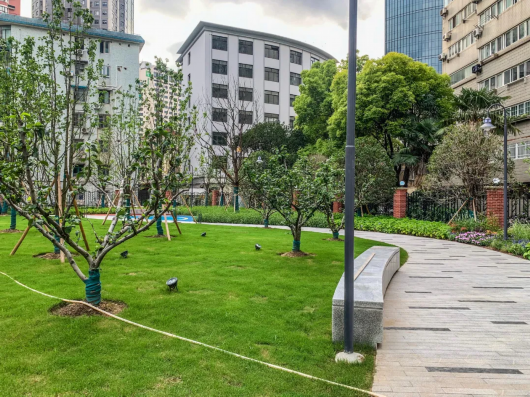 祁云绿地位于祁连山南路云岭西路东南角,总面积为9300平方米,新增步道438米、廊架2座、花岗岩坐凳85米,是一处集生态休憩、社区活动、户外运动等功能于一体的开放式公共绿地。绿地巧借南北向局促空间布置,以一条步道串连纳塔栎行道树、景观廊架、骨架乔木林荫、路旁坐凳、户外篮球场以及休闲广场,打造“小而美”的邻里公共空间。