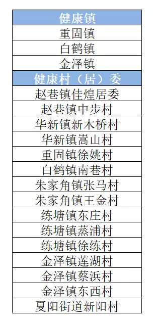 2019年,上海市启动健康村(居)镇试点建设工作,青浦区的3个镇和15个村(居)入选了首批健康村镇试点建设。