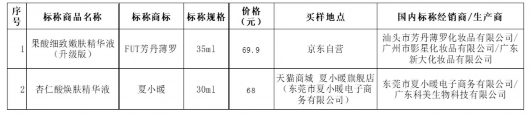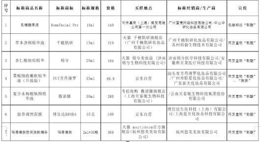 (1)7件标注妆字号的样品宣称有“刷酸”“换肤”等字样