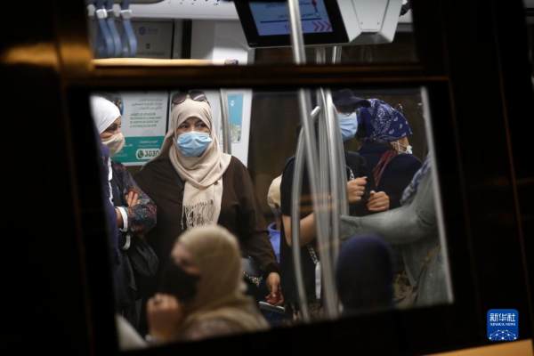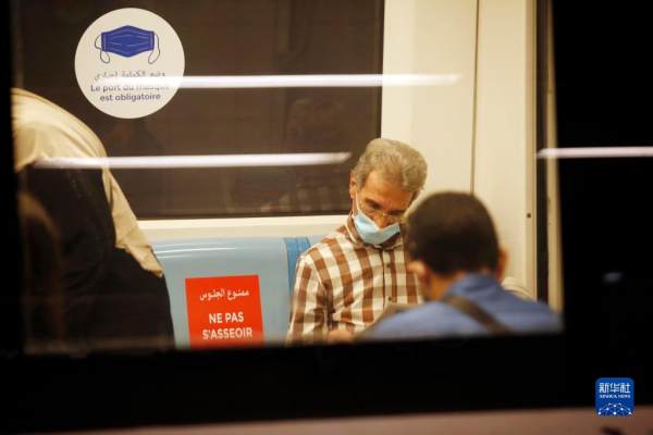 10月7日,佩戴口罩的乘客在阿尔及利亚首都阿尔及尔乘坐地铁。新华社发