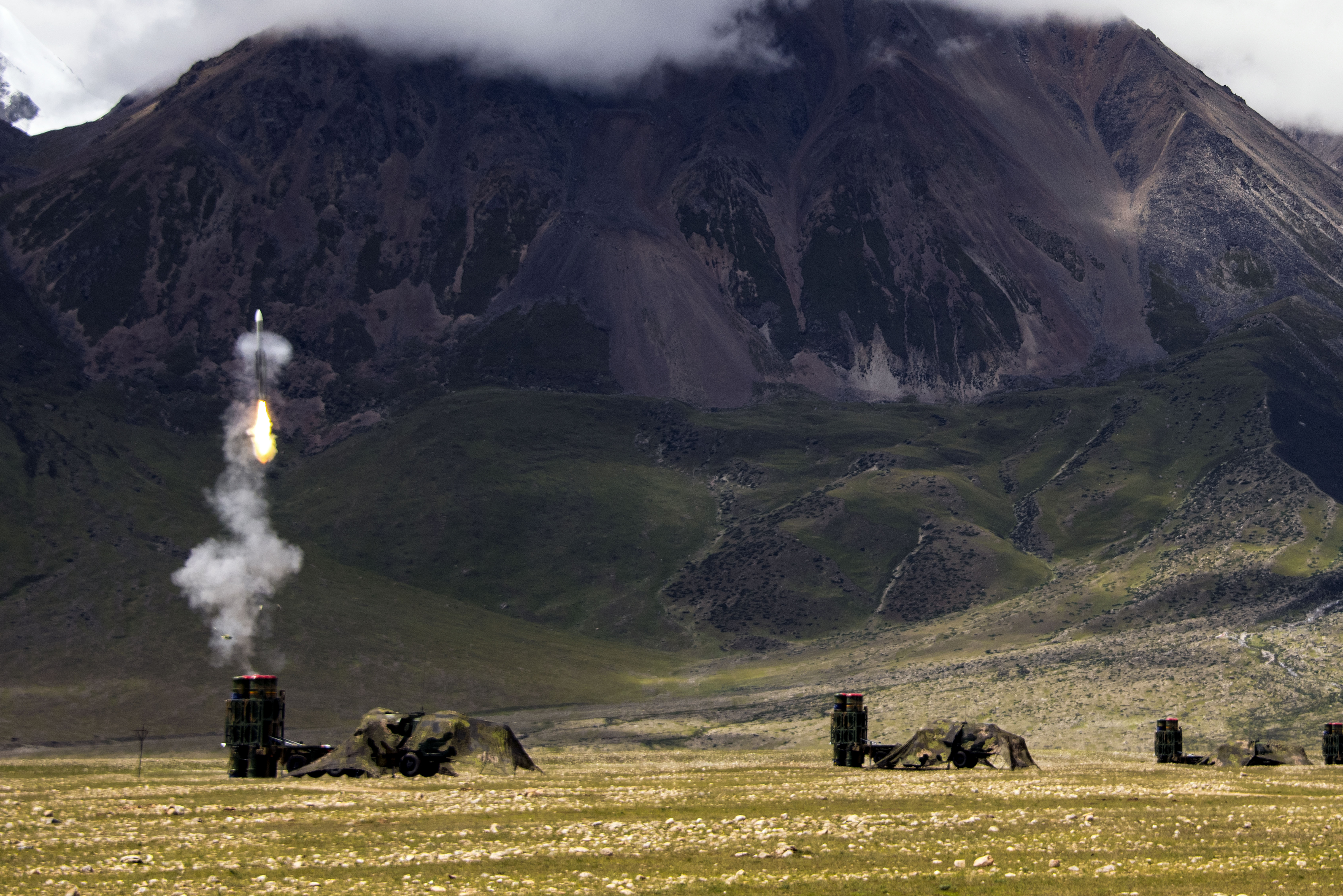 一阵尖锐的警报声,划破了野外驻训地的安静,西藏军区某旅结合当面实战背景组织实兵演练……地处4700海拔的西藏军区某防空旅作战值班分队突然接到“敌”情通报,旅党委迅速分析当前防空态势,命令部队做好防空作战准备,有效检验防空兵分队实战化训练水平。