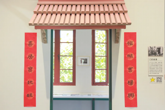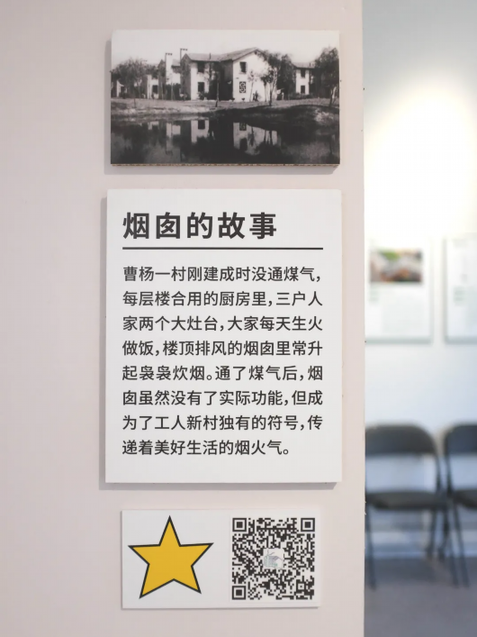 参照曹杨一村原始格局,展厅中央区域还原了居民们记忆中的曹杨“三宝”:烟囱、回字纹窗格和门。