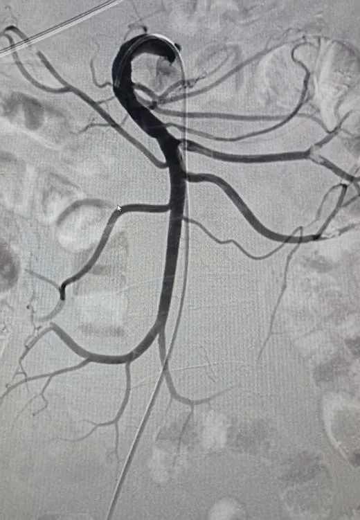 ▲肠系膜上动脉栓塞吸栓术前后对比