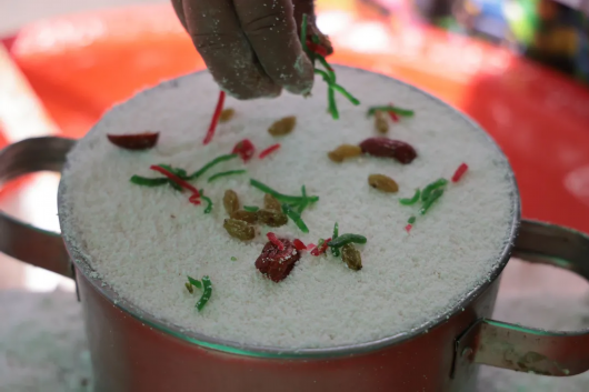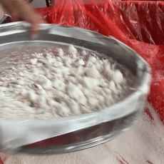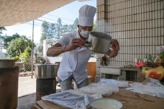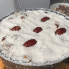 接到村委会的预订,曹王村西巷组村民李明一家就忙活开了,从10月5日开始,他们每天早上7点起来蒸糕,一直干到傍晚5、6点结束。李明说,他们主要制作的是白糖糕和红糖糕,搭配的食材非常丰富,有核桃、红枣、葡萄干等6种。