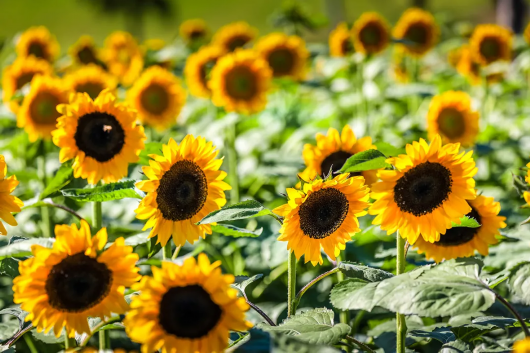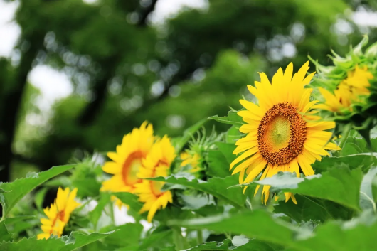 1、拍摄一大片向日葵的时候,让向日葵在照片的下面1/3处,天空在上面的2/3处,这样的比例看起来照片更具美感;