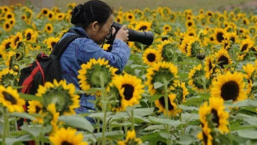 赏花信息:十多个花色的向日葵目前仍然处在盛花期。