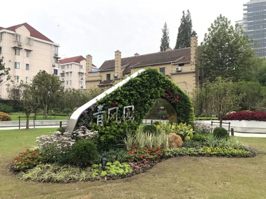 清风园的入口大草坪上,出现了一面艺术花墙。花墙之上,金森女贞、舞春花、比格海棠、萼距花、金叶佛甲草等迎风招展,映衬着“清风园”三个字熠熠生辉。