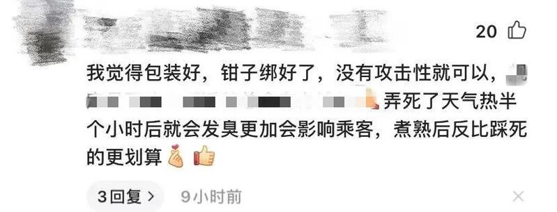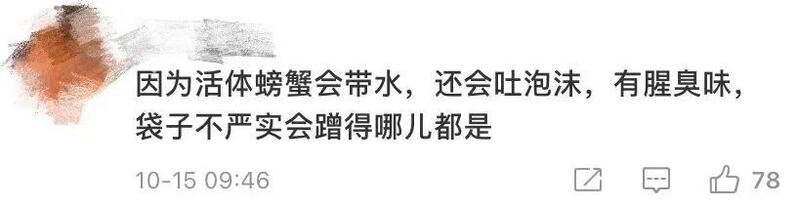也有人支持乘务员的做法:“不让带有不让带的道理,很难界定什么叫包装好。”“海鲜腥味重,会吐泡沫,还容易滴水,污染环境。”“万一爬出来了怎么办?”