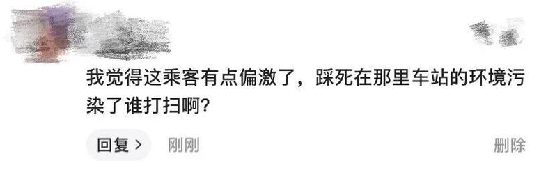 还有人谴责男乘客:“把螃蟹踩死在车站让谁来打扫啊?”