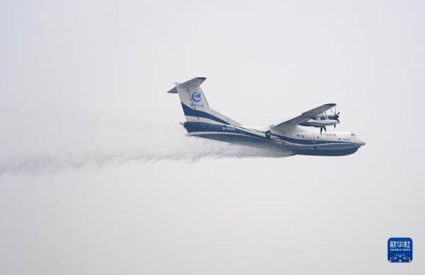 10月29日,“鲲龙”AG600水陆两栖飞机进行飞行投水功能演示。