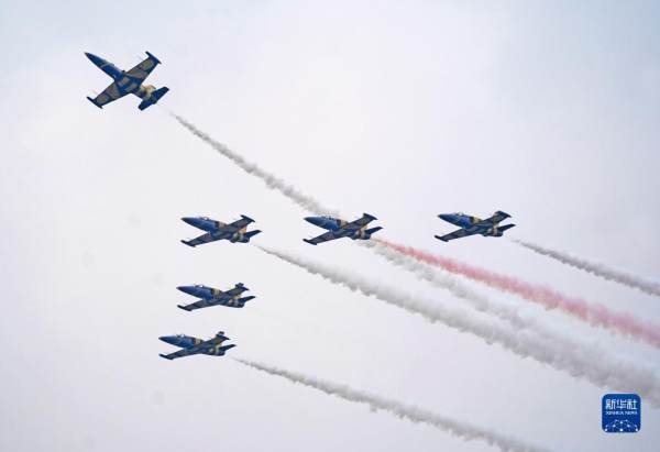 10月29日,三角翼编队进行飞行表演。